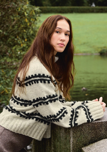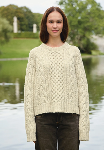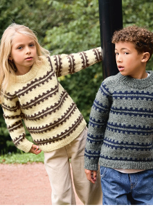 Denne Marius-genseren i Tynn Peer Gynt har en myk A-fasong som gir et moderne uttrykk til det klassiske mønsteret. Strikkes ovenfra og ned.