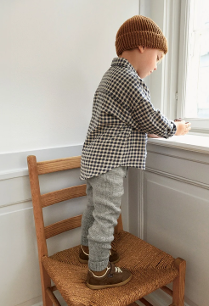 Buksen strikkes ovenfra og ned, med dobbel vrangbord i livet og vendepinner bak for en god passform. Vrangborden rundt bena strikkes ekstra lang, slik at den kan brettes opp og buksen varer lenge. Man kan velge om man ønsker strikk eller snor til løpegangen i livet. Veiledende pinner: Pinne nr 3 Strikkefasthet: 27 masker = 10 cm Tilbehør: Eventuelt strikk til løpegangen i livet.