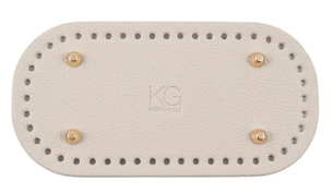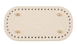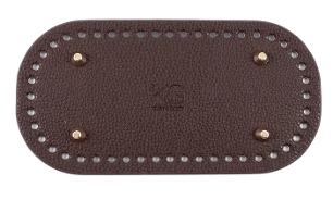 Bunn i PU-skinn til å hekle eller sy på vesker og kurver. Stødig base med 4 gullfargede metallbein på undersiden. Bunnen har 48 små hull langs kanten. Nikkelfri. Størrelse: L200xB100xH3.5mm Hull: 4,5mm