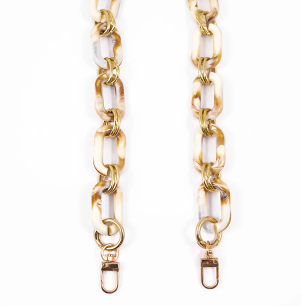 Kjede i resin med flott marmorering. Krokene kan tas av, og du kan ta bort ledd om du ønsker kortere kjede. Nikkelfri. Størrelse: 80cm langt og 2,3cm bredde.