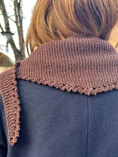 leKnit by Lene H. Samsøe - Enkeltoppskrift 17. Dette er en tynnere variant av Peacock genseren, og strikkes på 2 tråder, en tråd sunday og en tråd tynn silk mohair. Den høye halsen med den lille taggekant supplerer bærestykkets hullmønster så fint. Genseren har splitt bak med 3 små knapper. Strikkes ovenfra og ned. Det strikkes vendepinner etter mønsteret for en fin passform i halsen. Oppskriften er på norsk.