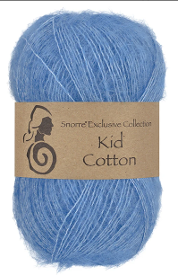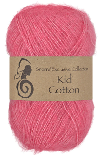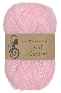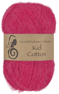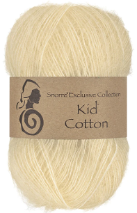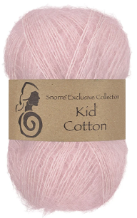 Kid Cotton - Snorre Exclusive Collection 25g = 200 meter Pinne 3mm = 24 masker per 10 cm Kid Cotton består av 70 % kid mohair og 30 % bomull. Garnet består av den fineste kid mohairen og bomullen, som gir et florlett garn som er luftig, men samtidig varmt. Garnet er perfekt til delikate plagg som gensere, sjal, cardigans, bolero med mere. Et garn som er både lett og solid, med volum fra kid mohair og den myke, definerte strukturen fra bomull. Produsert i EU.