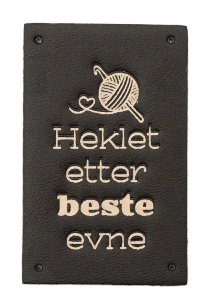 Merke i imitert skinn til å brette over vrangbord/kant. Knapp til å lukke/feste, dette gjør det enkelt å ta av ved vask, flytte eller ha på annet plagg etter behov. Egostrikk. Størrelse: 50x20mm