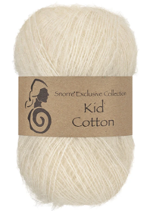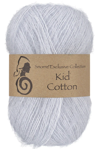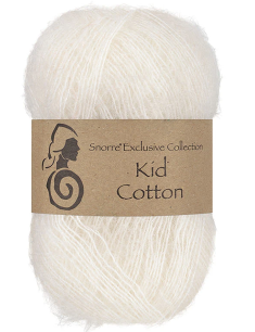 Kid Cotton - Snorre Exclusive Collection 25g = 200 meter Pinne 3mm = 24 masker per 10 cm Kid Cotton består av 70 % kid mohair og 30 % bomull. Garnet består av den fineste kid mohairen og bomullen, som gir et florlett garn som er luftig, men samtidig varmt. Garnet er perfekt til delikate plagg som gensere, sjal, cardigans, bolero med mere. Et garn som er både lett og solid, med volum fra kid mohair og den myke, definerte strukturen fra bomull. Produsert i EU.