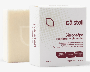 Effektiv flekkfjernersåpe fra På Stell. Uunnværlig flekkfjerner med unik sammensetning av naturlige oljer og aktive stoffer fra sitron. Tar bort flekker av bær, blod, tran, barnegulp, tomatsaus, rødvin osv osv. Økologisk, vegansk, biologisk nedbrytbar og så mild at du kan vaske hendene med den. Slik bruker du Sitronsåpen: 1. Gni såpen på flekken med så varmt vann som plagget tåler 2. Hvis det er en gammel eller ekstra gjenstridig flekk – la plagget ligge et par timer slik at såpen får virke. 3. Skyll eller vask av Tips! Sitronsåpen er utmerket til håndvask. Holder hendene rene og myke og har en viss antibakteriell effekt. Væt klærne, gni inn flekken med såpen, la den ligge fem minutter, et par timer viss gammel og vanskelig flekk (en halv time viss ull), legg plagget i maskin uten å skylle vekk såpen og vask på vanlig måte.