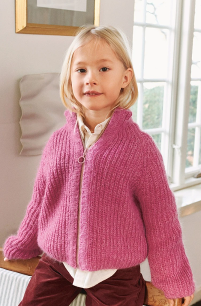 Tia Zipper Jacket Junior er en moderne jakke med glidelås og struktur i halvpatent. Jakken strikkes ovenfra og ned med raglan, og strikkes med én tråd Sunday og én tråd Tynn Silk Mohair for et mykt og eksklusivt uttrykk. Oppskrift til Tia Zipper jacket junior i Tynn Merinoull og Tynn Silk Mohair medfølger. Jakken strikkes ovenfra og ned med 1 tråd av hver kvalitet. Det legges først opp masker til en halskant som strikkes frem og tilbake i halvpatent. Videre økes det til raglan før arbeidet deles til ermer, for- og bakstykket, og hver del strikkes ferdig for seg i halvpatent. Til slutt strikkes det opp masker til forkanter som strikkes i dobbelstrikk før det sys i glidelås. Veiledende pinner: Pinne nr 2, Pinne nr 2½, Pinne nr 3½ Strikkefasthet: 19 masker = 10 cm Tilbehør: Ca 40-60 cm glidelås
