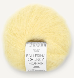 Ballerina Chunky Mohair har en klassisk kombinasjon av mohair og ull som gir det karakteristiske langhårede mohair uttrykket vi kjenner så godt. Garnet passer utmerket som en følgetråd eller strikket alene enten i en eller flere tråder Løpelengde: ca. 135 meter pr 50gr Veiledende pinner: 5-7mm Strikkefasthet 16-13masker pr 10 cm