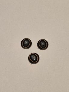 Knapp av metallegering, ca 12mm Nikkelfrie. Tåler kun håndvask.