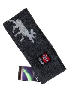 Nordlys Elg strikket ull pannebånd grå 100% ull foret med fleece One size N-150FEP-59