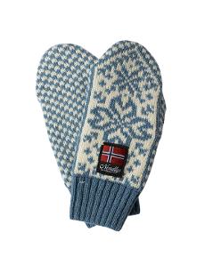 Nordlys Mønstret ull votter til dame og herre Produsert i 100% ull – foret med fleece. Samme mønster/farge som grønn og natur Mønstret ull genser.