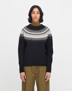 Varde rundfelt genser. Alle Rauma Collection strikkede plagg er laget i 100% norsk ull og har en 100% norsk produksjon. ------------------------ The Varde sweater takes its inspiration from a traditional pattern from Rauma's archives. It is made from 100% Norwegian wool and 100% made at the Rauma factory in Norway.