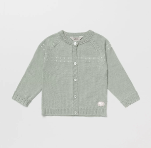 En nydelig kardigan i ribbestrikk med fine treknapper. Jakken har oppbrett på ermene som brettes ned ettersom barnet vokser og gjør at hver størrelse varer lenger. Superfin sammen med romper og seledress i samme serie. Produktet er laget av 100% merinoull av høyeste kvalitet og mykhetsgrad, og har både Woolmark og OEKO-TEX® sertifisering. Plagget kan vaskes i maskin på 40° C ullprogram. Bruk vaskemiddel for ull, og vask sammen med lignende farger. Plagget bør henges opp til tørk med det samme og sørg for at knappene er kneppet opp under tørking, for å unngå misfarging på plagget.