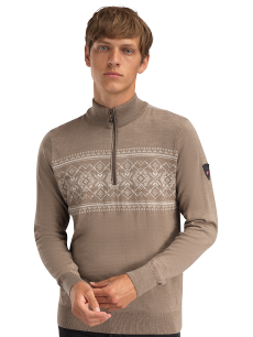 Passform: regular Mellomlag Utførelse: finstrikket 100% myk merino-ull Halvhøy hals med glidelås Vekt: 345g (størrelse L) Designet og strikket i Norge Kan vaskes i maskin på ullprogram En sporty, lett og myk merino ullgenser med blokkfarger og mønster med den klassiske åttebladrosen. Genseren har halvhøy hals med glidelås og kan brukes både som en fritidsgenser og til sportslige aktiviteter.
