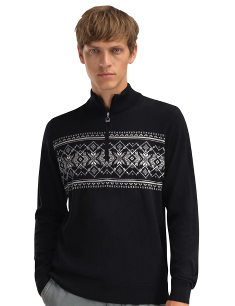 100% skin soft merino-ull Designet og strikket i Norge Kan vaskes i vaskemaskin En sporty og elegant ullgenser i 100% merino-ull, med design inspirert av vår VM-genser fra verdensmesterskapet i St. Moritz i 2003. Dobbelt lag myk merino-ull strikket sammen med en fleksibel tråd, gir en behagelig stretch-effekt og holdbar passform. Moritz er et av våre bestselgende designs.