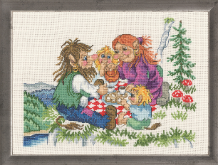 Med i pakken er det broderstoff, brodergarn, ramme og nål. Instruksmanual følger også med. Stoff: 100% Lin Garn: 100% Bomull Aida 26"/10 thr/cm