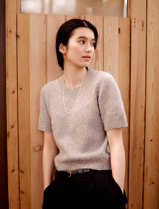Lun Lauratee er en delikat, glattstrikket t-skjorte med et klassisk uttrykk. Silhuetten er enkel og rett med skrå skuldre, rund hals og korte ermer. Den strikkes ovenfra og ned med en sammensatt konstruksjon som gir en behagelig og pen passform. Strikket i Lun Merino er T-skjorten myk, lett og deilig mot huden. Lun Lauratee passer både til jobb og i hverdagen, og kan enkelt styles opp til festligere anledninger. Den er enkel i uttrykket, men rik på kvalitet – et stille, sikkert og varig valg i garderoben.