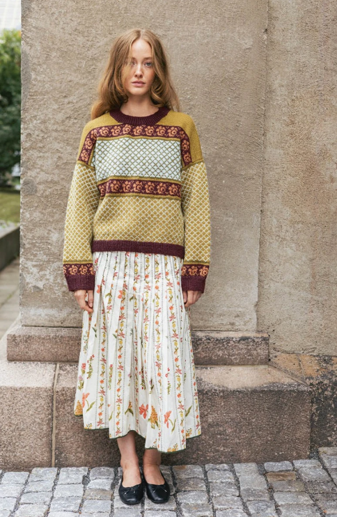 Blome damegenser strikkes i Tynn Peer Gynt ovenfra og ned med mønster etter diagram. En tidløs skatt fra arkivet – opprinnelig kjent som Jumper 1616 S.