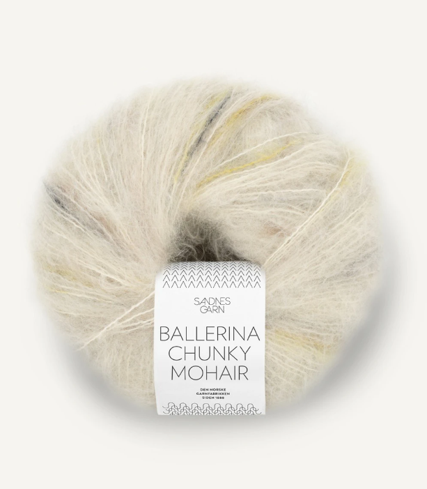 Ballerina Chunky Mohair har en klassisk kombinasjon av mohair og ull som gir det karakteristiske langhårede mohair uttrykket vi kjenner så godt. Garnet passer utmerket som en følgetråd eller strikket alene enten i en eller flere tråder
