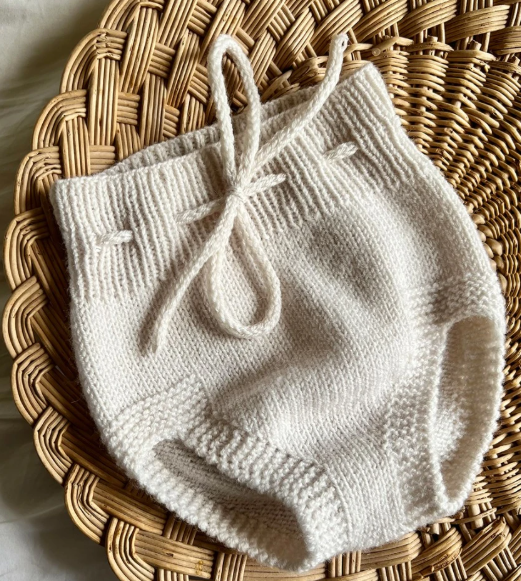 Little bloomer Light strikkes nedenfra og opp i glattstrikk med rillestrikkede kanter. Først strikkes nedre del av forstykket. Så plukkes det opp masker og nedre del av bakstykket strikkes. Arbeidet samles så på rundpinne og strikkes rundt i glattstrikk med en forhøyning bak for god passform. Til slutt strikkes linningen i 1x1 ribb i Sunday.