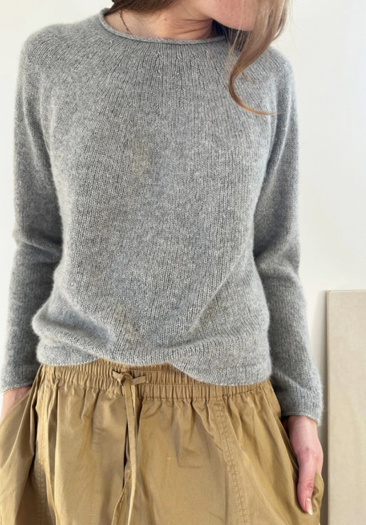 Plain Yoke Cashmere er strikket ovenfra og ned. Alt strikkes rundt i glattstrikk, dermed strikker du stort sett bare rettmasker. Det runde bærestykket formes med økninger. Den eneste forskjellen mellom ”Detailed edition” og ”Debutant edition” er at halsen i ”Debutant edition” er lik foran og bak.
