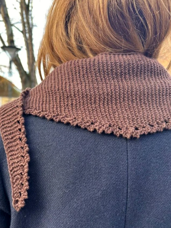 Taya Scarf er det perfekte lille strikketøyet som er enkelt og morsomt å strikke. Taya Scarf strikkes fra spiss til spiss i rettstrikk. Det har en liten blondekant langs den skrå siden og en lenkekant langs den rette siden. Alt strikkes samtidig, så skjerfet trenger ingen montering.
