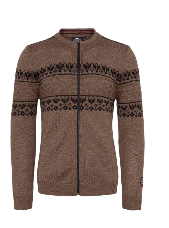 Tønsberg cardiganen har et klassisk norsk mønster med geometriske former og en fin, taktil struktur. Den er strikket i 100 % ull, som gir naturlig varme, god pusteevne og lang levetid.
