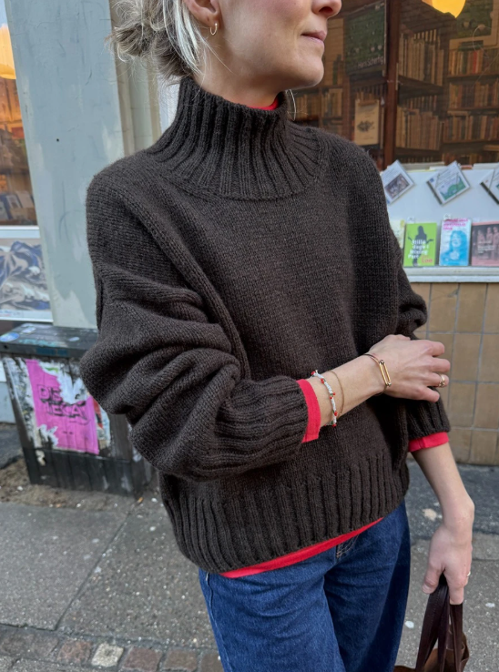 Hannah Sweater O-neck bør ha en bevegelsesvidde (positive ease) på 35 cm i de minste størrelsene, men gradvis mindre i de større størrelsene. Størrelsene XXS (XS) S (M) L (XL) 2XL (3XL) 4XL (5XL) svarer til et bystemål på 75-80 (80-85) 85-90 (90-95) 95-100 (100-110) 110-120 (120-130) 130-140 (140-150) cm. Målene på den ferdige genseren er angitt på forsiden av oppskriften. Mål deg selv før du går i gang med å strikke, for å vurdere hvilken størrelse som vil passe deg best. Dersom du f.eks. måler 95 cm rundt om bysten (eller det bredeste sted på overkroppen din), bør du strikke str. M. En genser i str. M har overvidden 131 cm, og vil i nevnte eksempel gi en bevegelsesvidde (positive ease) på 36 cm. Målskjema finner du her.