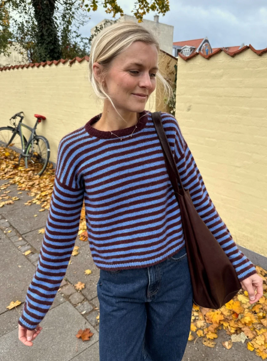 Materialer: Farge 1 (mørk): 125 (125-150) 150 (150) 175 (175) 175 (200) 200 (225) g Cashmere Classic fra Cardiff (25 g = 112 m) eller Cashmere fra Sandnes Garn (25 g = 110 m) eller Cashmere Premium fra Lang Yarns (25 g = 115 m) eller Cashmere 6/28 fra Pascuali (25 g = 112 m)