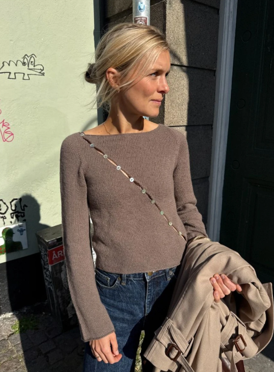 Materialer: Forslag 1: 200 (200) 200-225 (225) 250 (250-275) 275 (300) 300 (325) g Tynn Silk Mohair fra Sandnes Garn (25 g = 212 m) (strikkes med dobbel tråd)