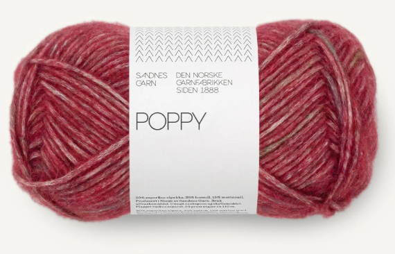 Poppy består av alpakkafiber som sammen med ull blir blåst inn i en bomullsstrømpe. Dette gir et mykt, lett og luftig garn.