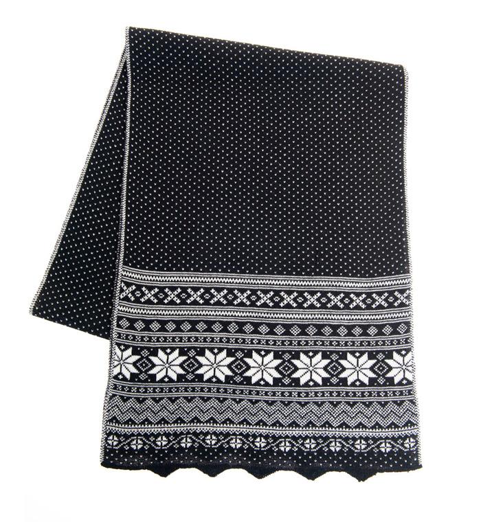Skjerfet er vendbart og kan derfor brukes med mørk eller lys hovedfarge.